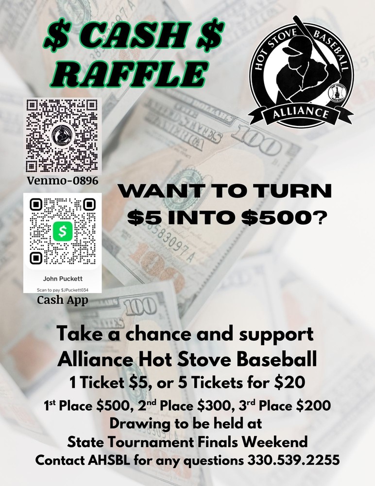 We're holding a cash raffle to raise money for the league! See the attached flier for details!