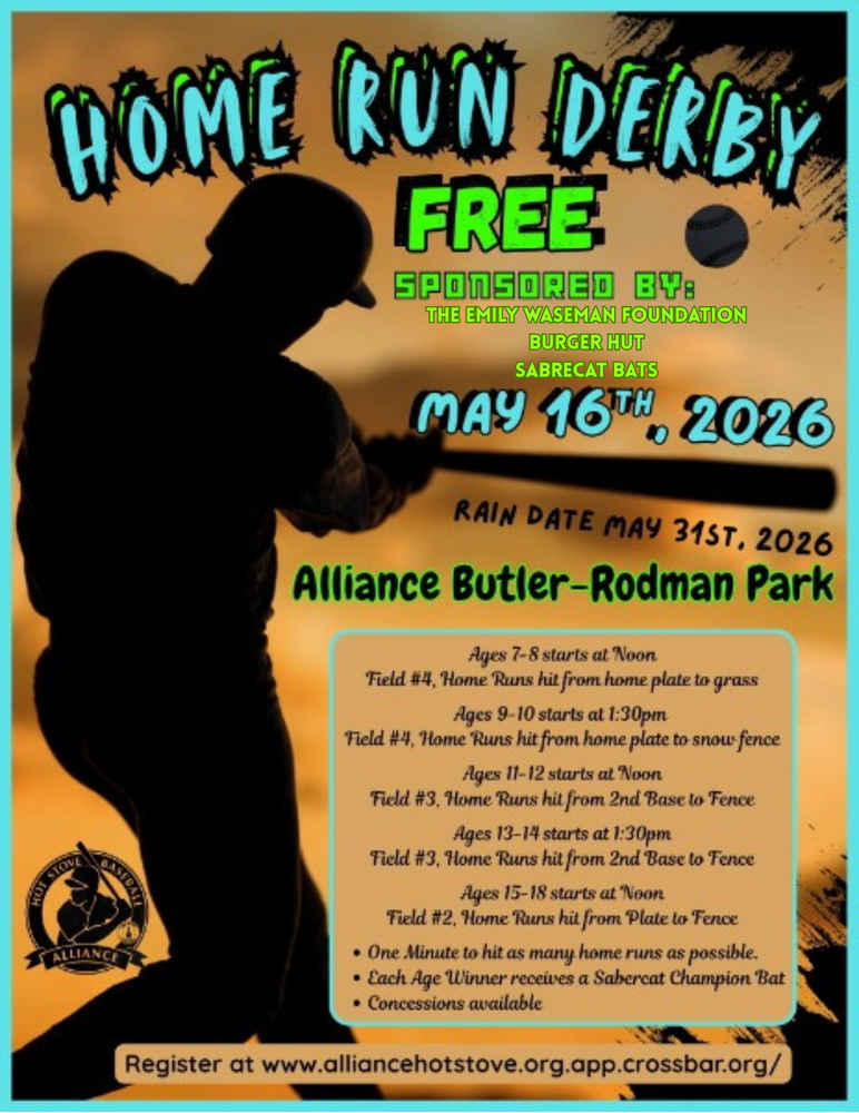 The 2nd Annual AHSBL Home Run Derby will be held at Butler Rodman Park on May 16th starting at 12:00pm.